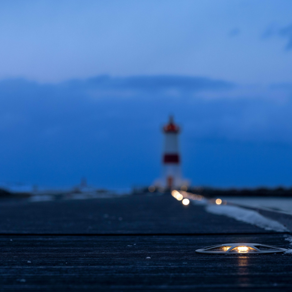 El balizamiento luminoso proporciona un acceso seguro a pantalanes y pasarelas mejorando la visibilidad a lo largo de las orillas y en las zonas de tráfico, al tiempo que se integra en medios ambientes sometidos a altos niveles de humedad y corrosión. Guían a los usuarios sin generar contaminación lumínica hacia el agua, protegiendo así la fauna acuática.